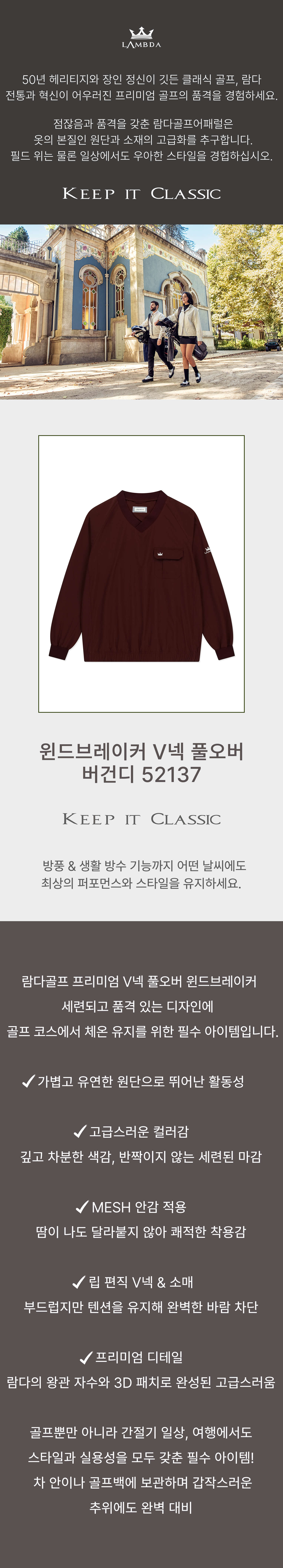 [남] 윈드브레이커 V넥 풀오버 버건디 52137