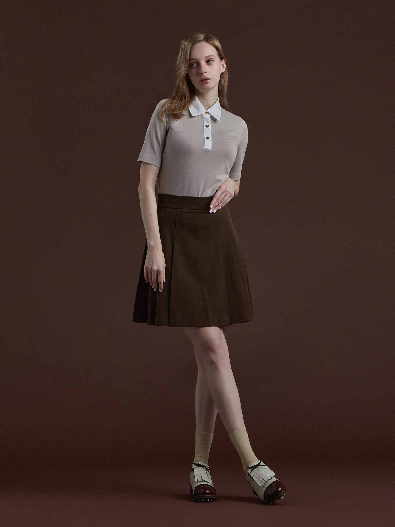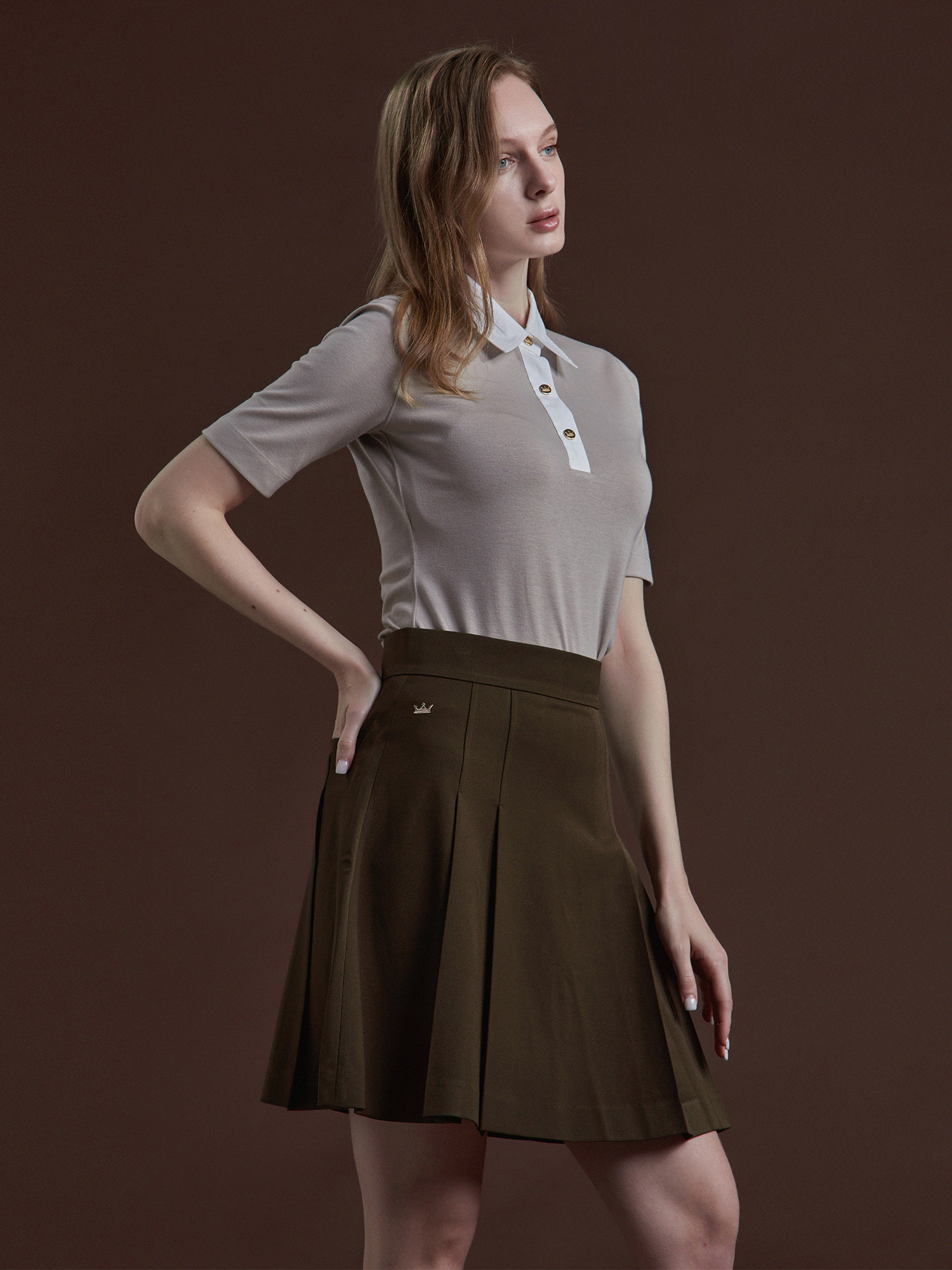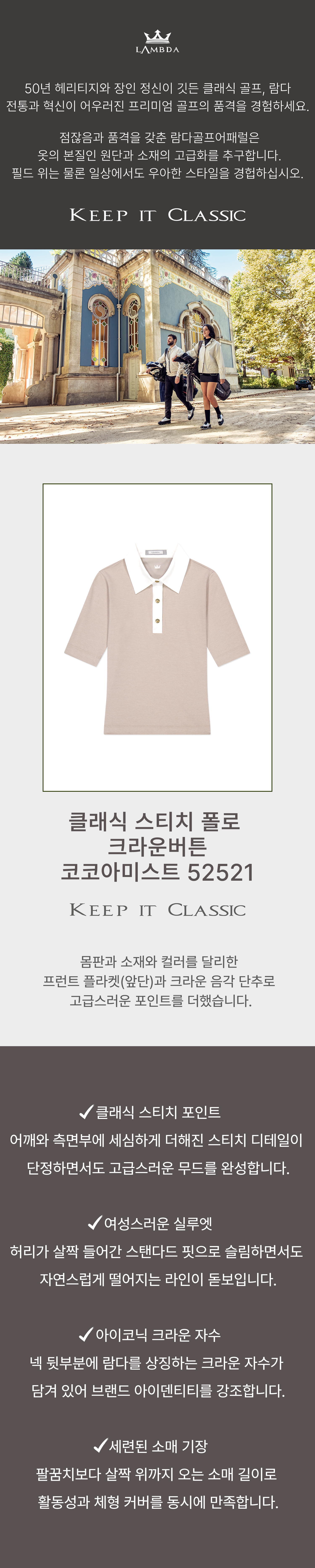 [여] 클래식 스티치 폴로 크라운버튼 코코아미스트 52521