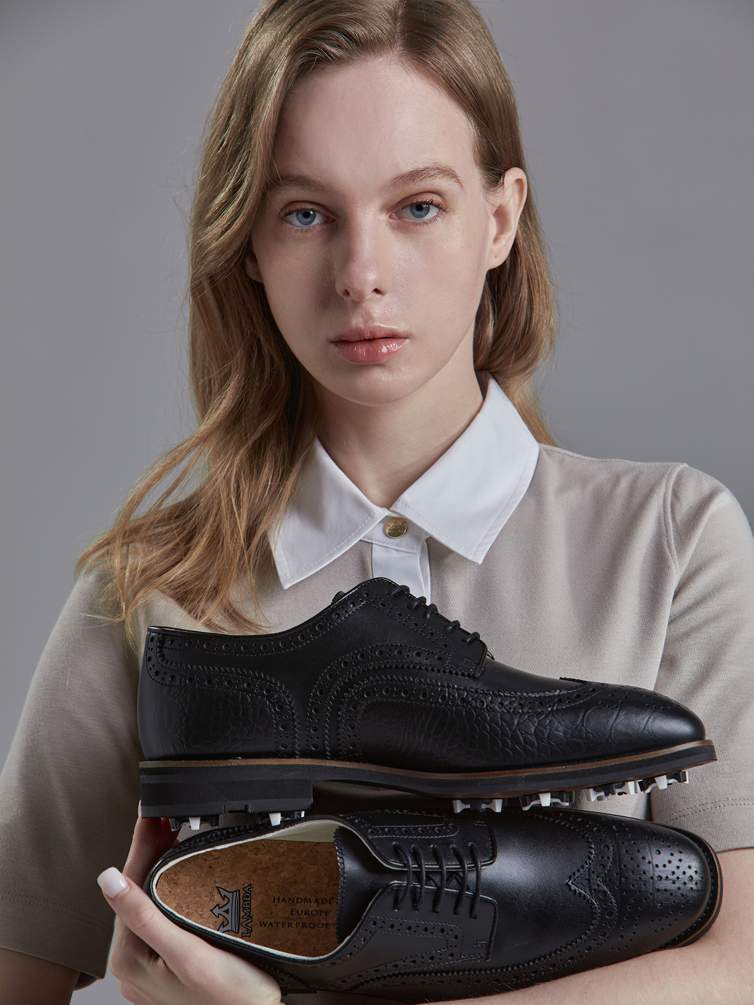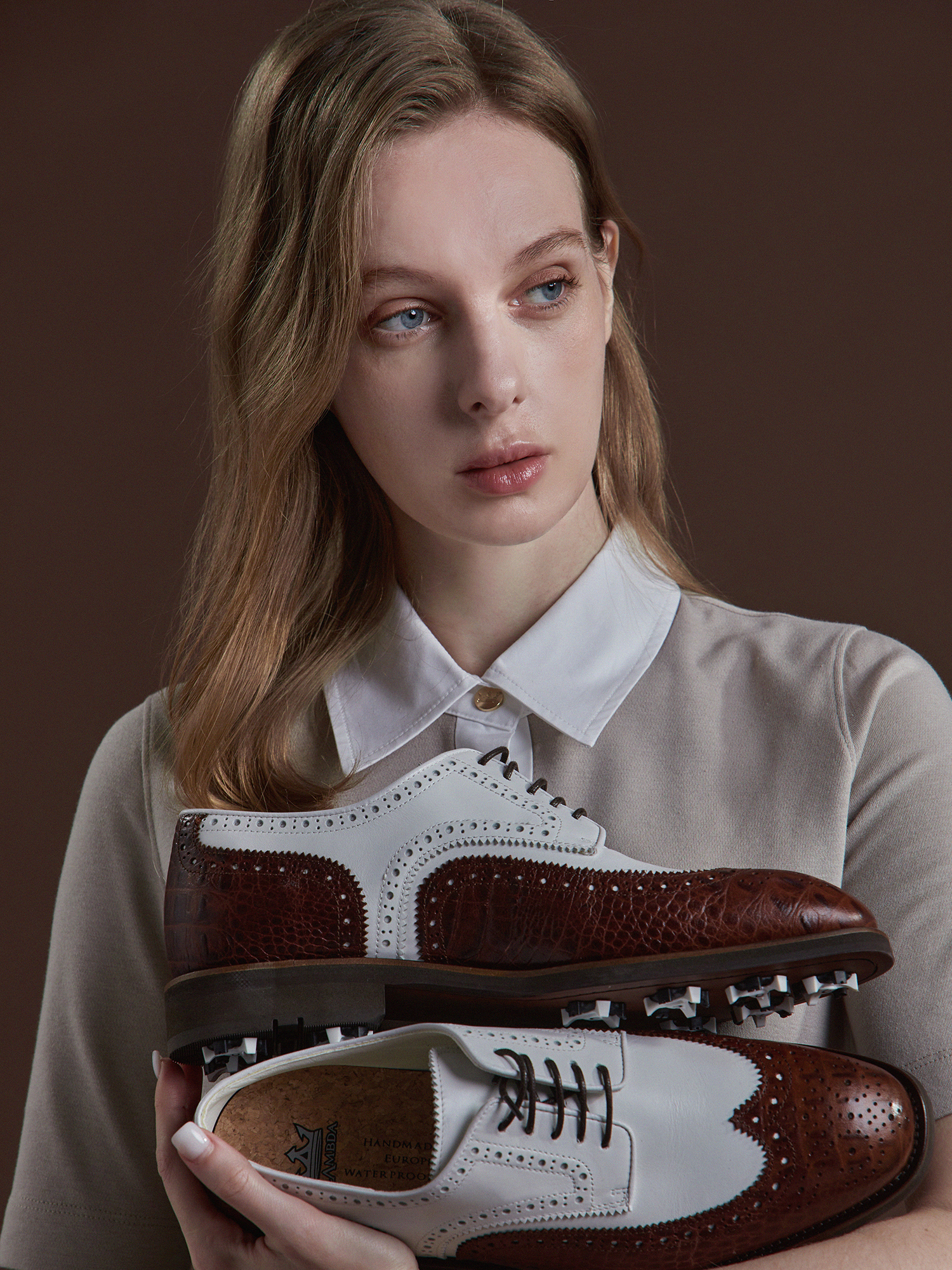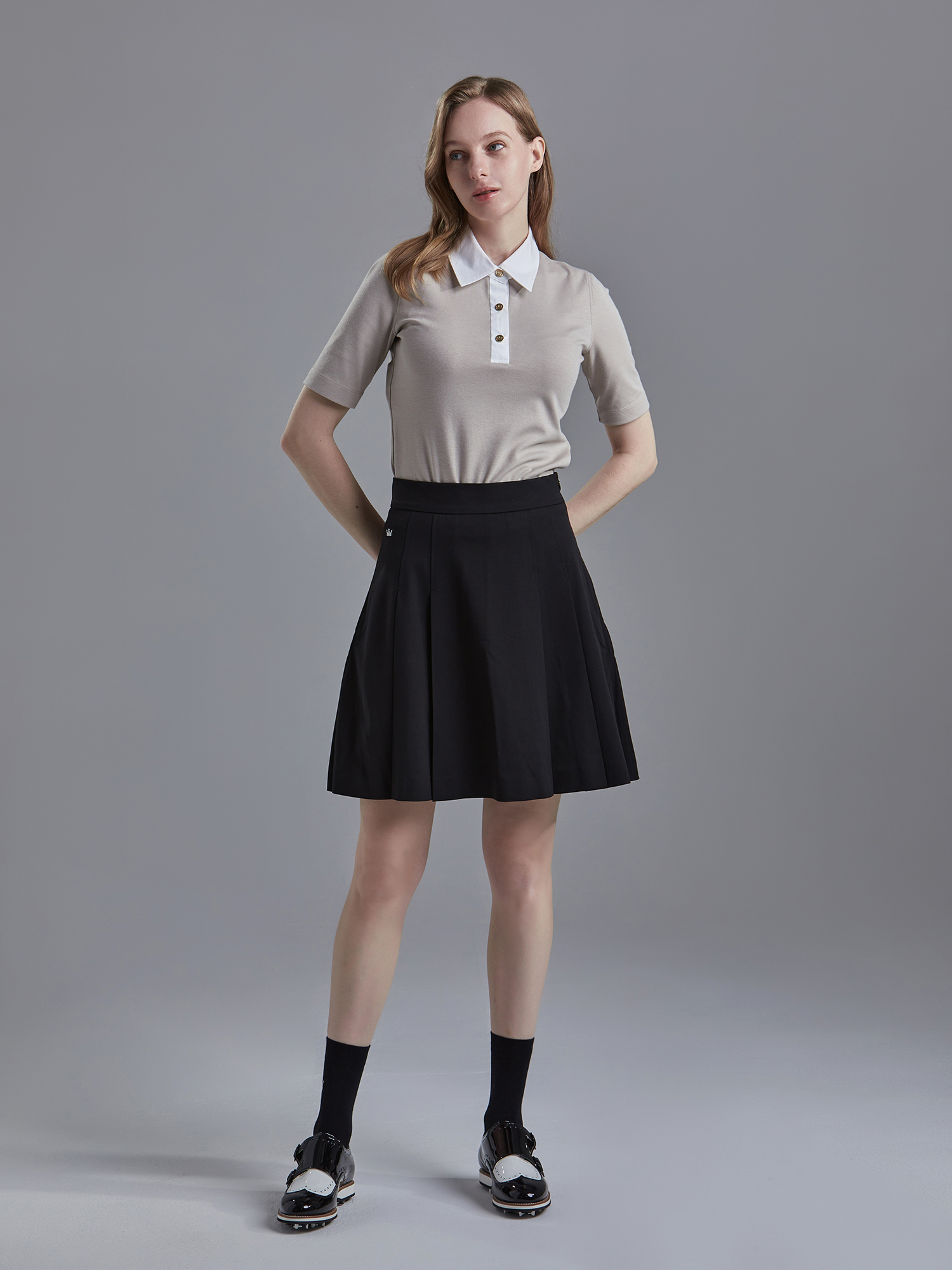 [여] 클래식 스티치 폴로 크라운버튼 코코아미스트 52521