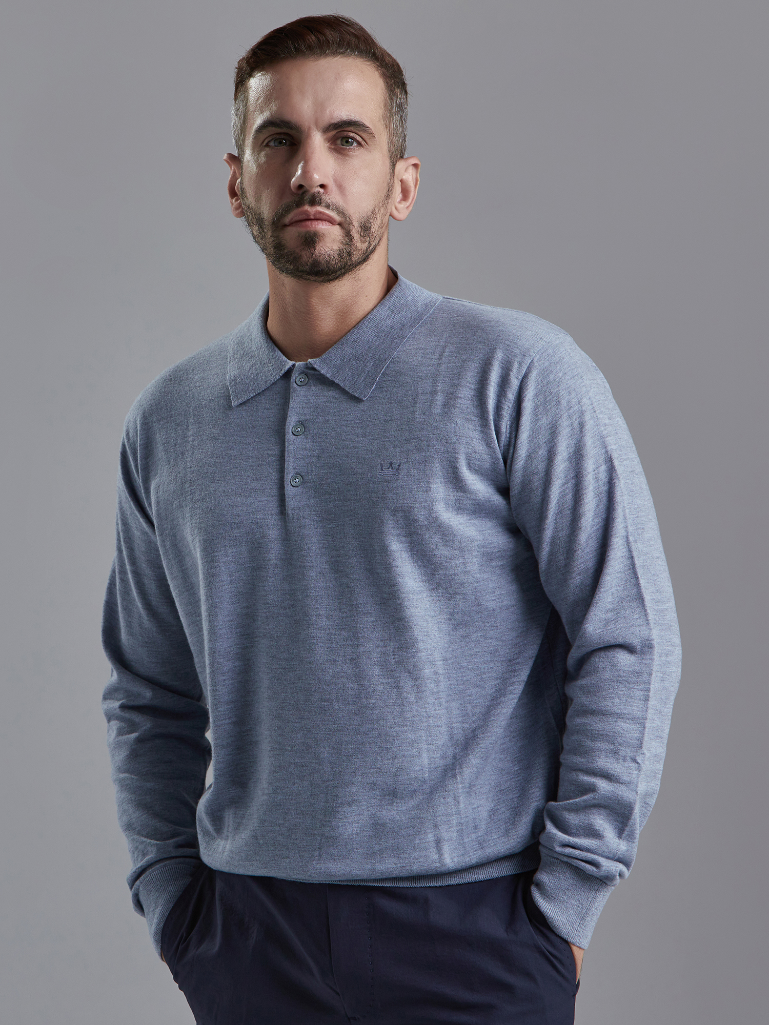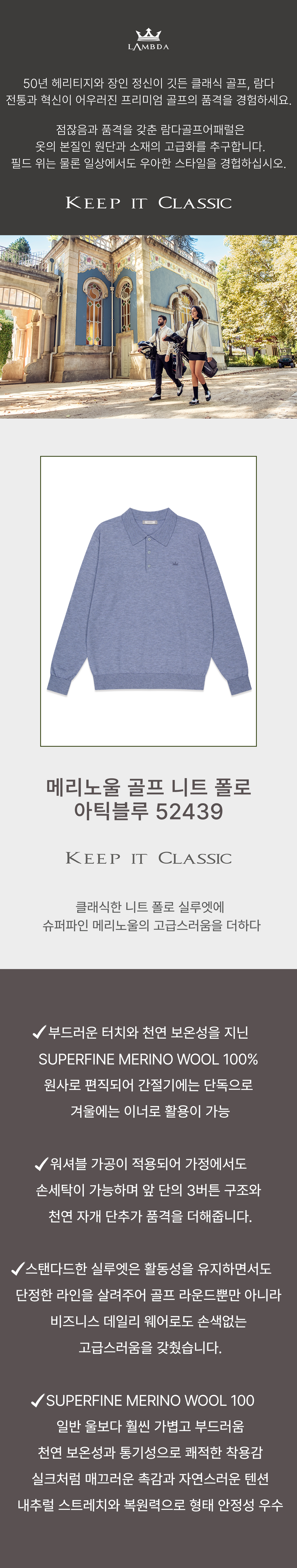 [남] 메리노울 니트 폴로 아틱블루 52439