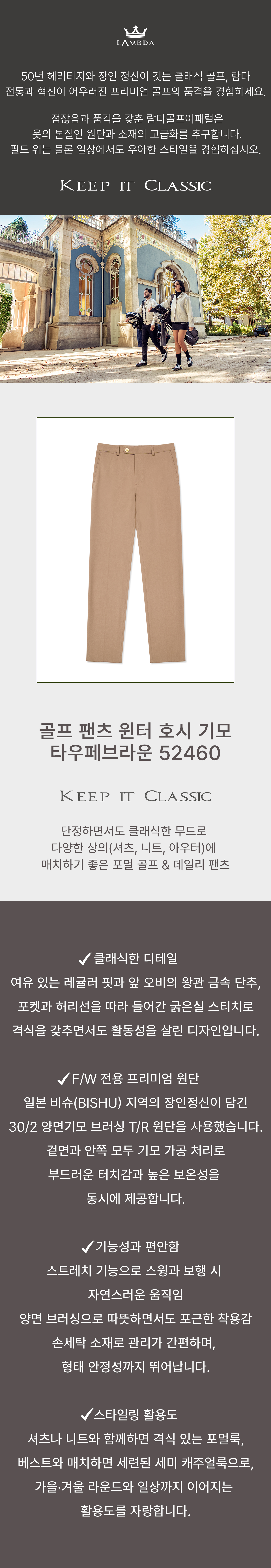 [남] 골프 팬츠 윈터 호시 기모 타우페브라운 52460