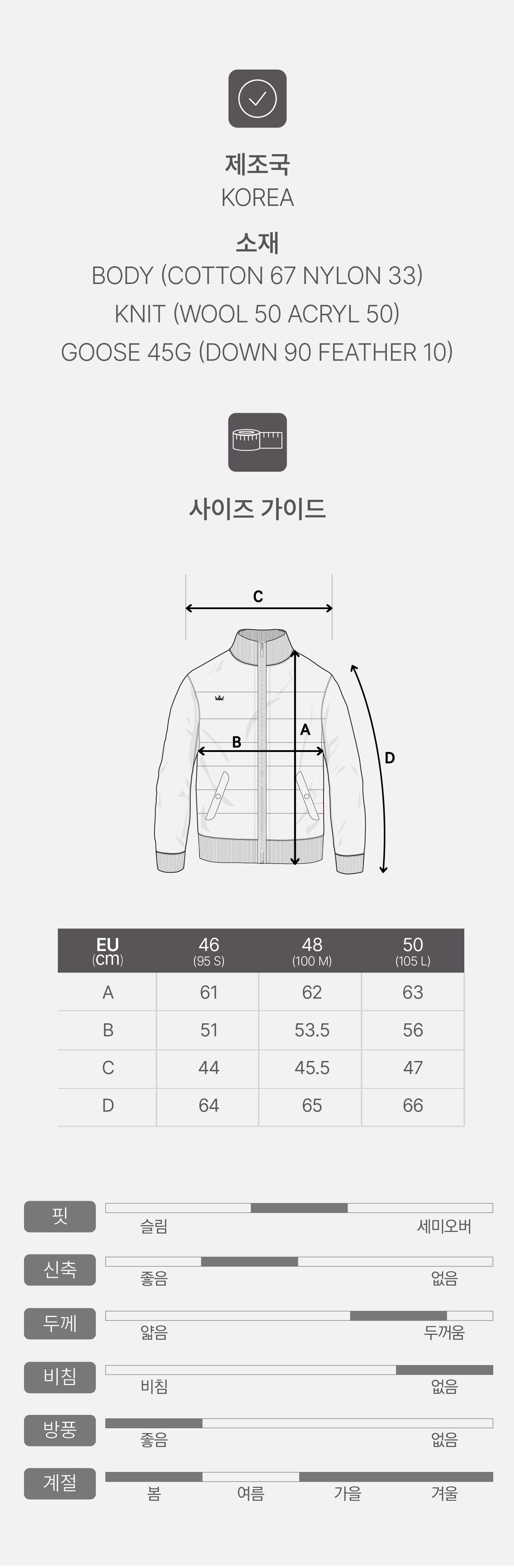 [남] 구스다운 하이넥 블루종 12909